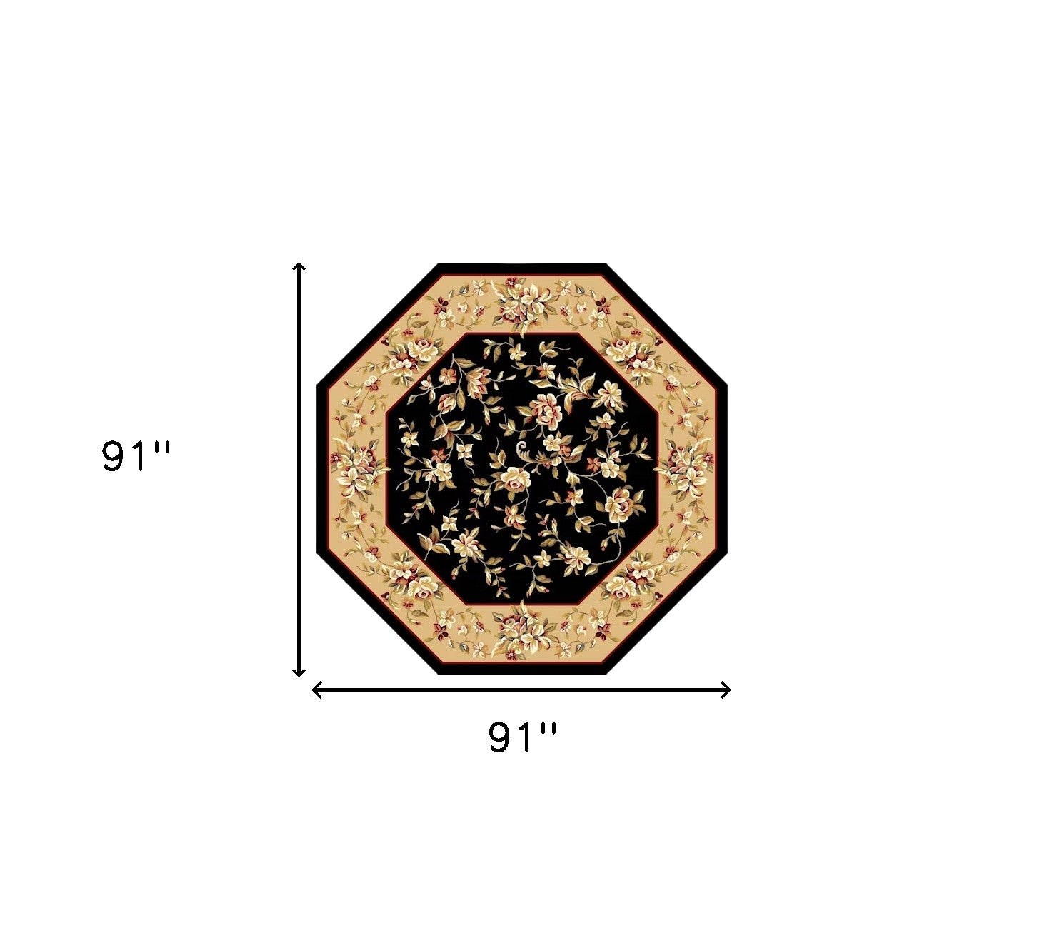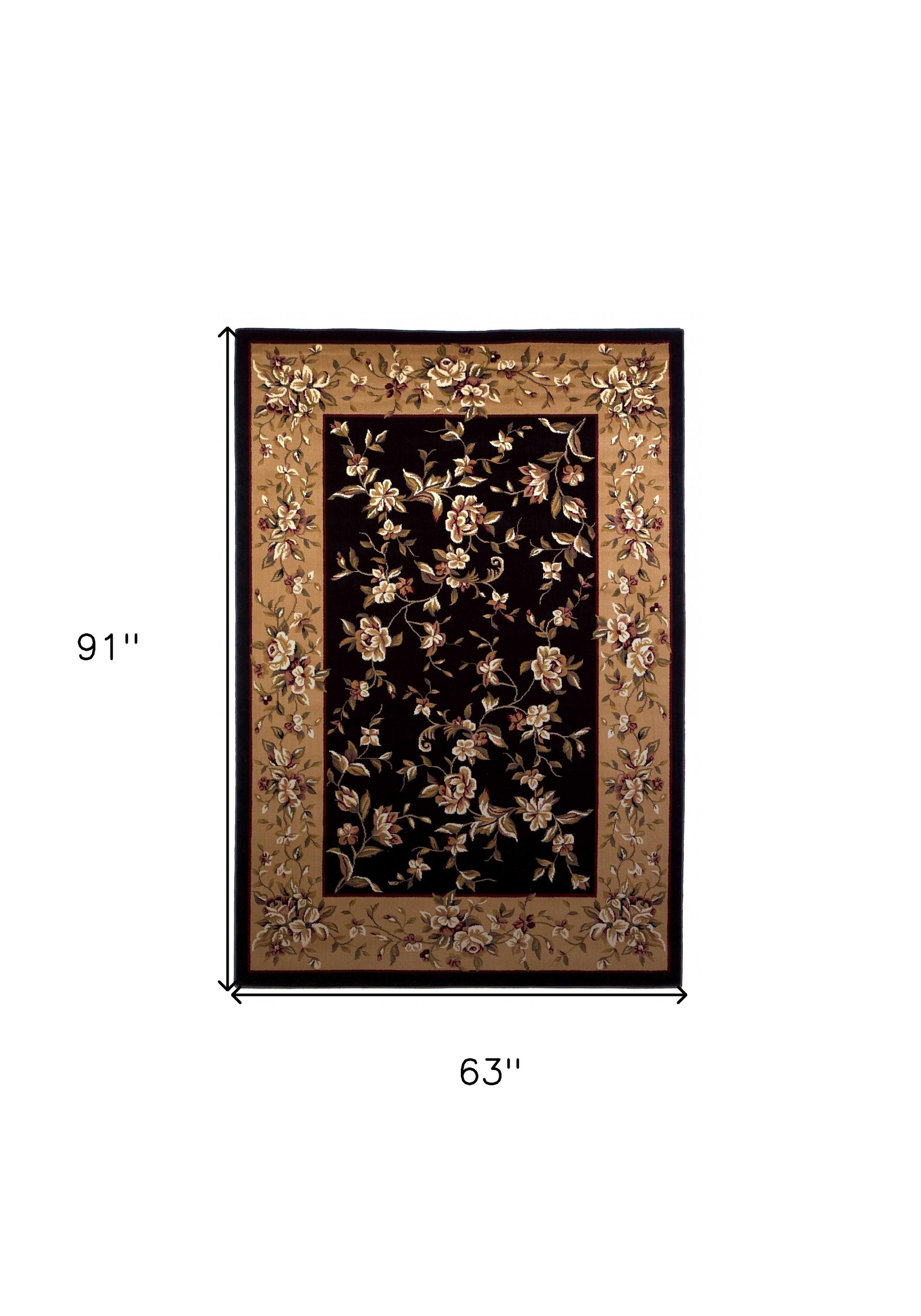 3' X 5' Black Beige Machine Woven Floral Vines Indoor Area Rug