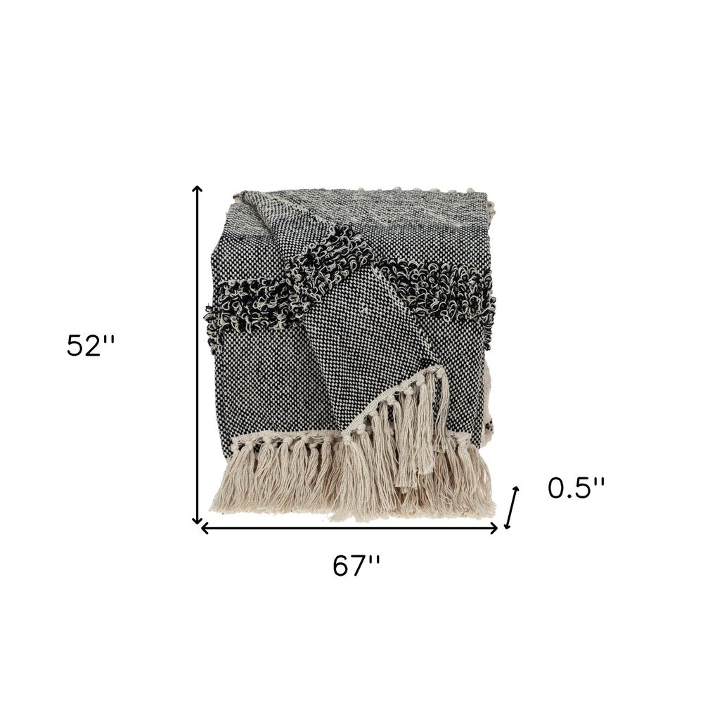 Boho Beige and Black Handloom Weave Throw with Decorative Tassels
