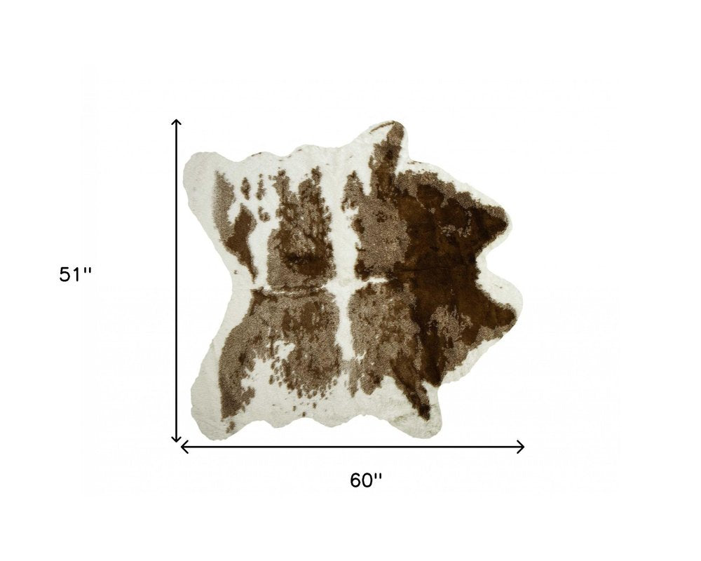 4' X 5' Brown And White Faux Fur Animal Print Washable Area Rug