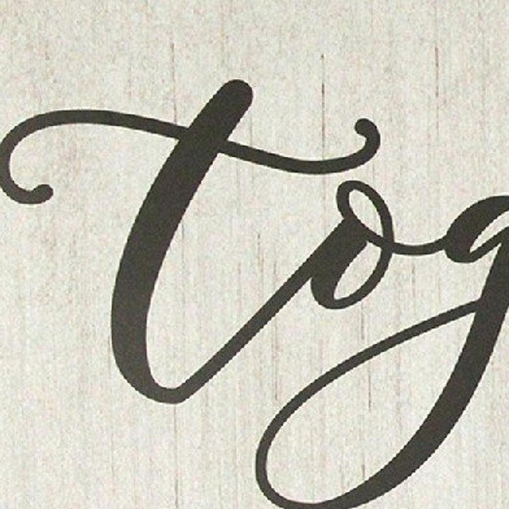 Put your feelings on display with the "Together We Have It All" Oversized Wall Art. This frameless wall art is handcrafted in a simplistic design letting the words Together We Have It All be the main focal point. The five words in bold type emphasize the meaningful message. Printed on faded grain white paper on board with a large footprint measuring 31.50" W x 1.18" D x 11.81" H, youll want to find a perfect spot to make a statement. Easy to hang with the attached V-hook on the back.