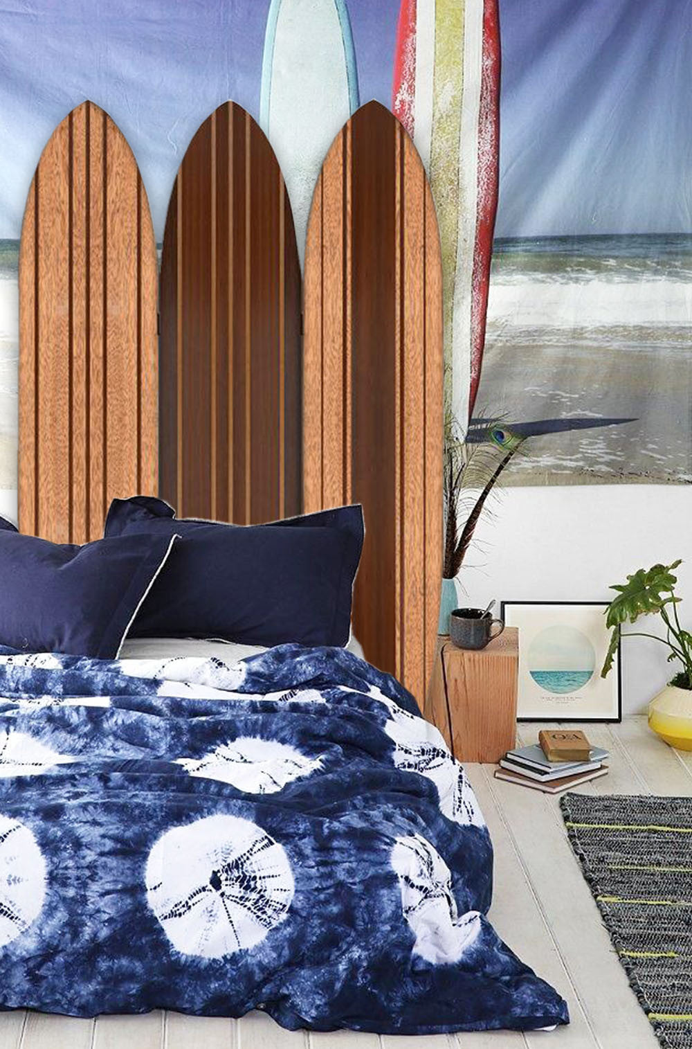 Enjoy this Natural Brown Wood Long Board Screen. Live the coastal lifestyle with your very own screen shaped into three 3 surfboards hinged together. Natural variations and colors in the wood board make for a unique piece that will be sure to drop jaws.